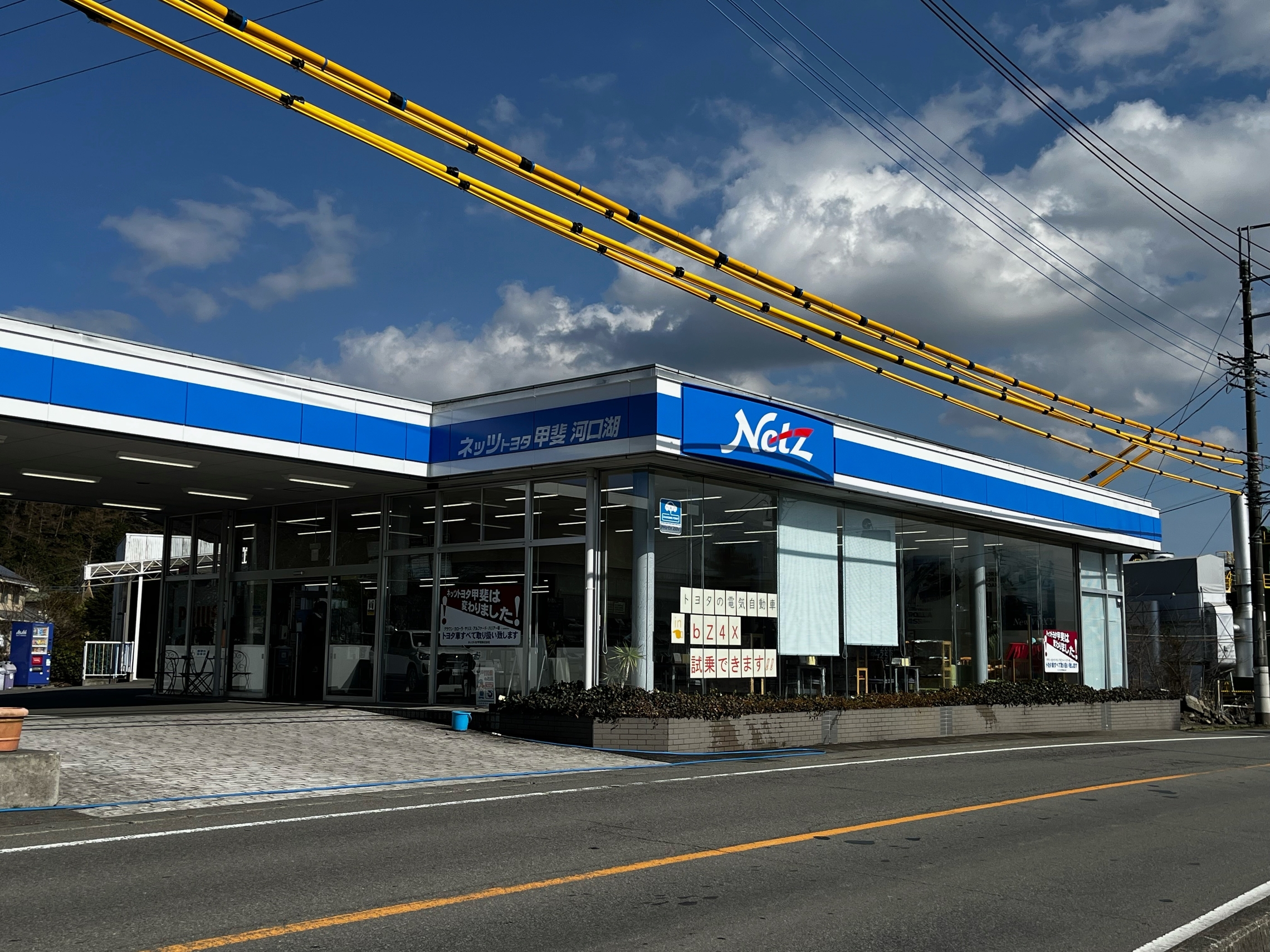 トヨタ車全車種の取り扱いがスタートしてから順次看板も各店舗交換されています。で、この度河口湖店の番がきたわけです。建物や展示場の上部は青色のままなので、“ネッツっぽさ”はあります。