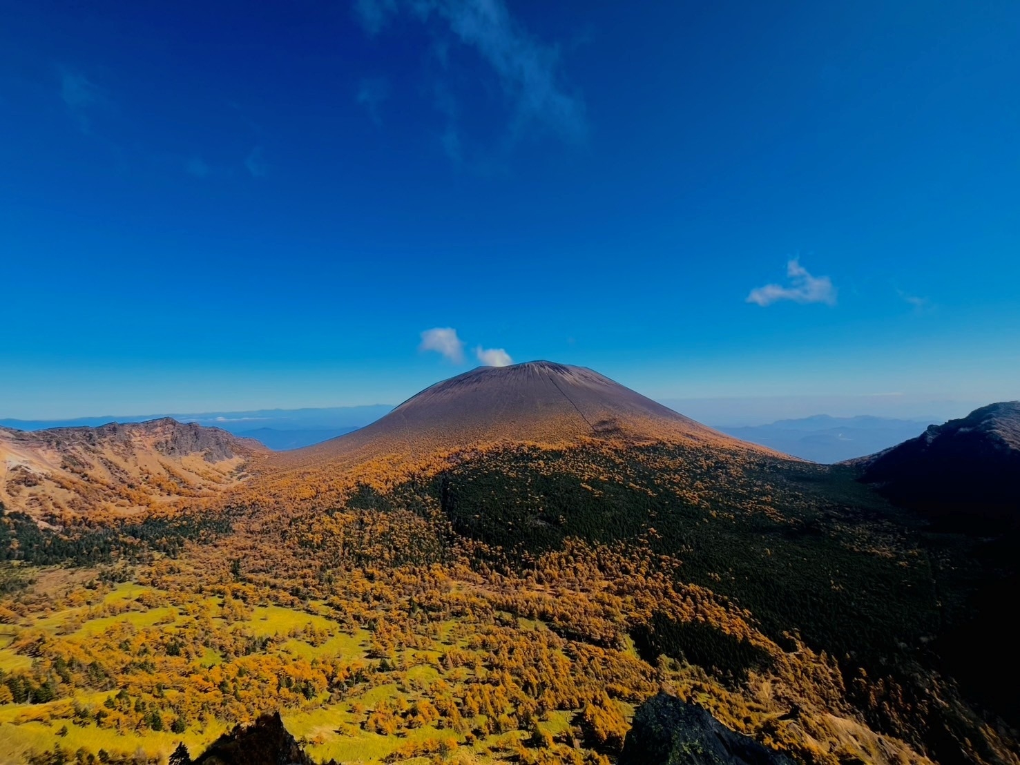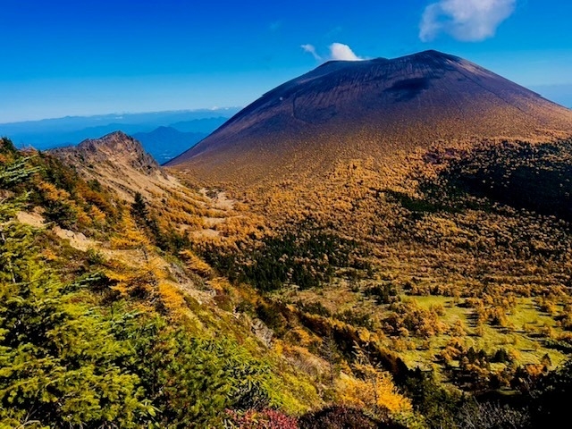 『浅間ゴールド』と呼ばれ、この時期の浅間山麓は唐松のもみじで