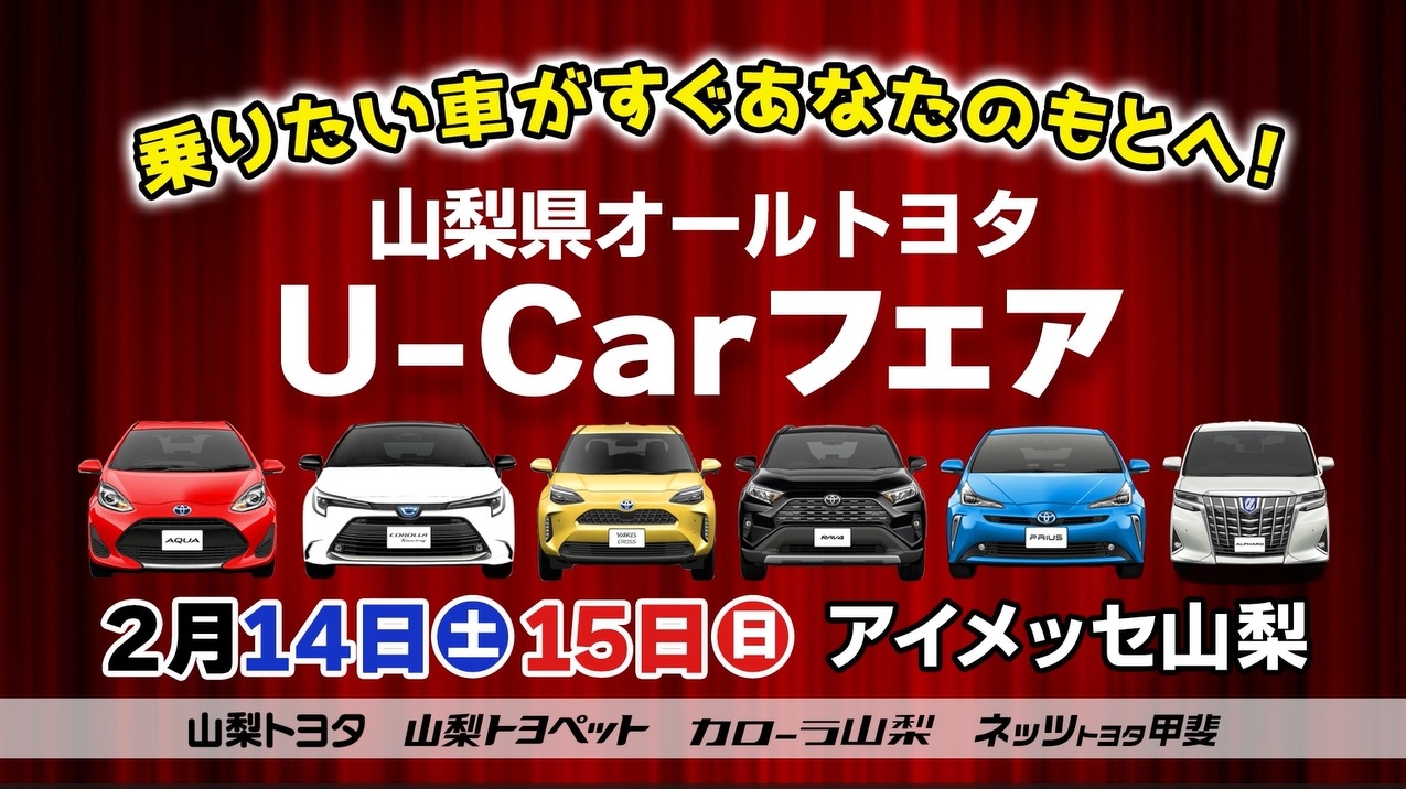 【アイメッセ山梨】にて開催されるオールトヨタU-carフェアのご案内です❣