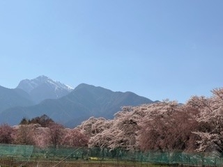 「甲斐駒ヶ岳⛰と桜🌸の写真を撮ってきてね📸」