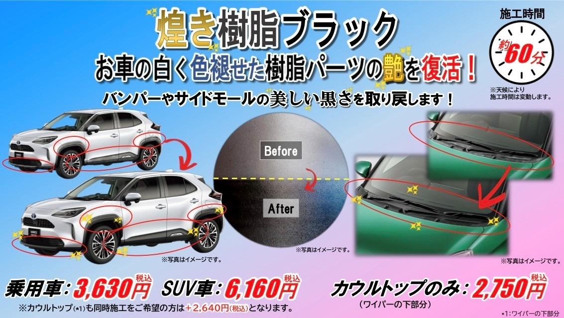 ◎お車の白く色褪せた樹脂パーツの艶を復活!